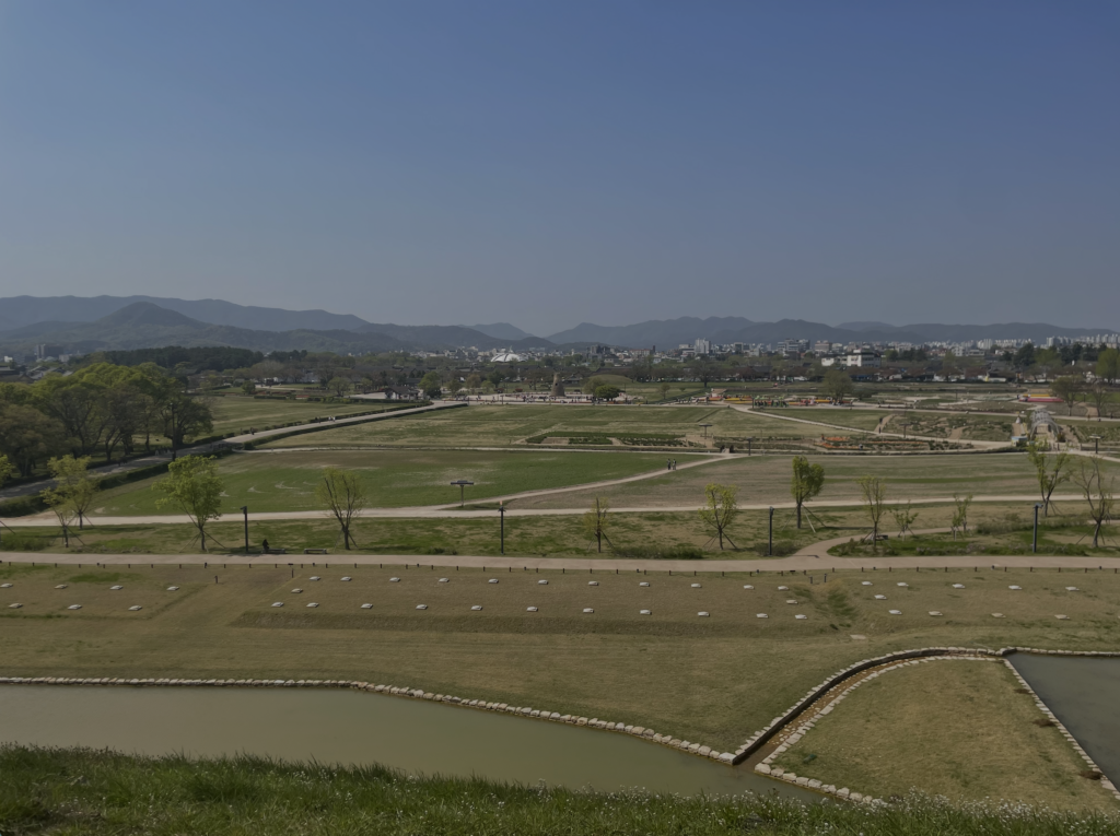 온 경주가 한눈에 들어오는 반월성의 가장 높은 언덕 벤치에 한참을 앉아있었다.